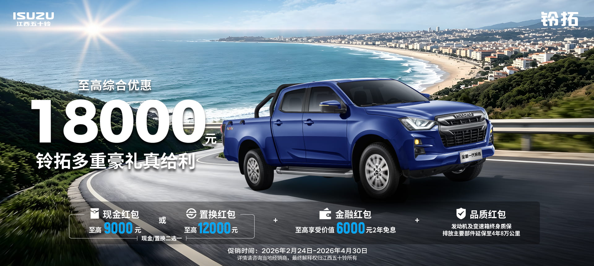 扭矩达560Nm!江西五十铃D-MAX 3.0T 16.98万起 3月20日上午